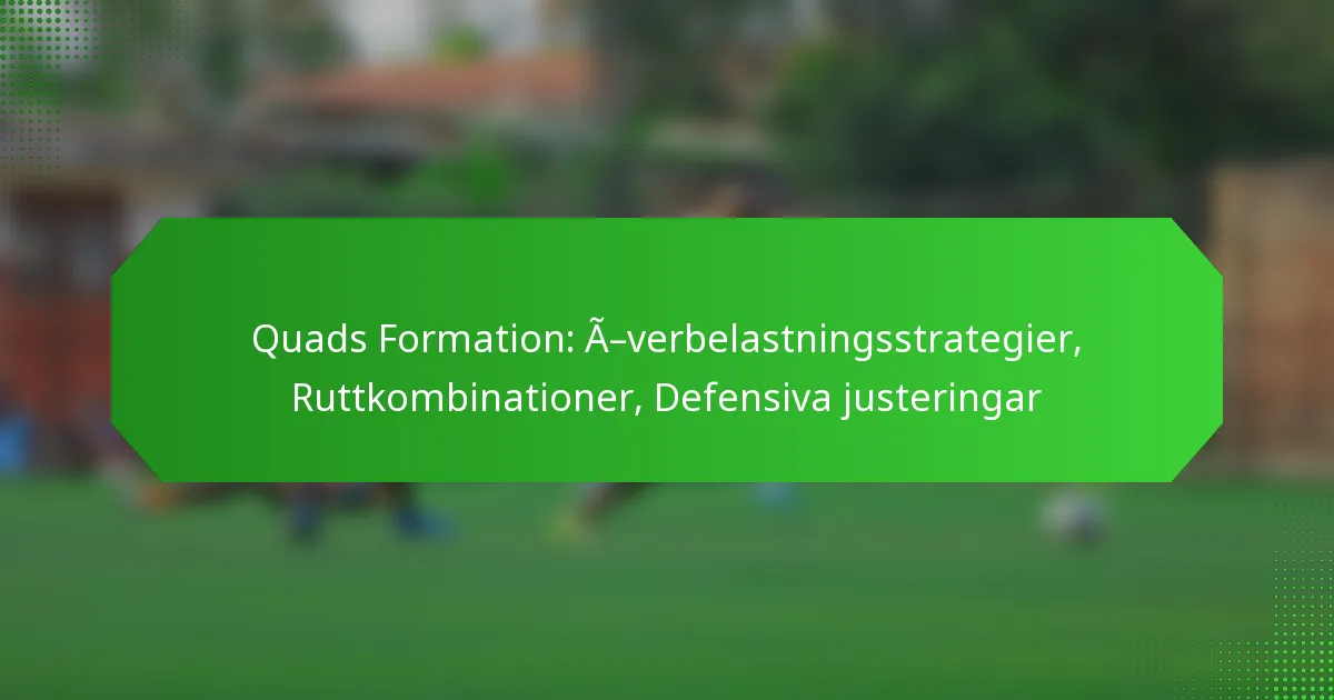 Överbelastningsstrategier i Quads-formationen fokuserar på att skapa numeriska fördelar i specifika områden av planen för att öka offensiv effektivitet. Genom att positionera flera spelare i en angiven zon kan lag utnyttja defensiva svagheter och öka målchanser.